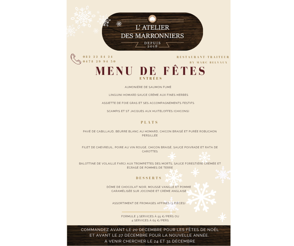 L' Atelier des Marronniers vous propose une cuisine d’inspiration française à déguster au cœur du village de Romedenne (Philippeville).